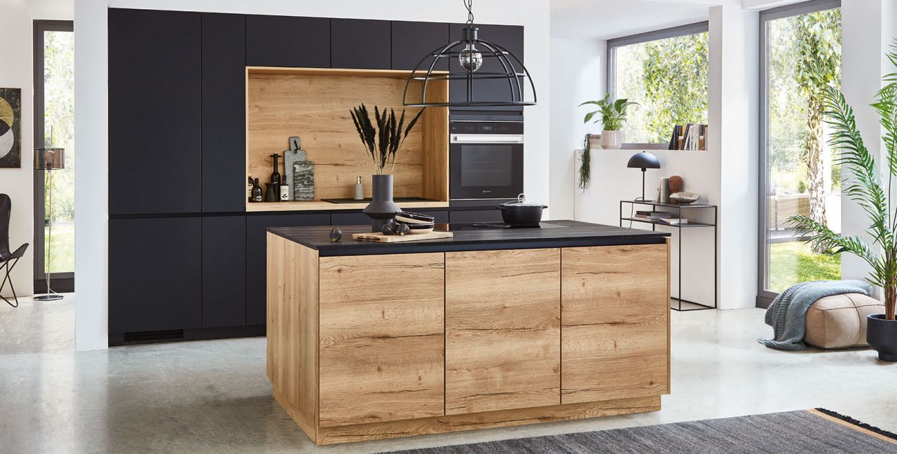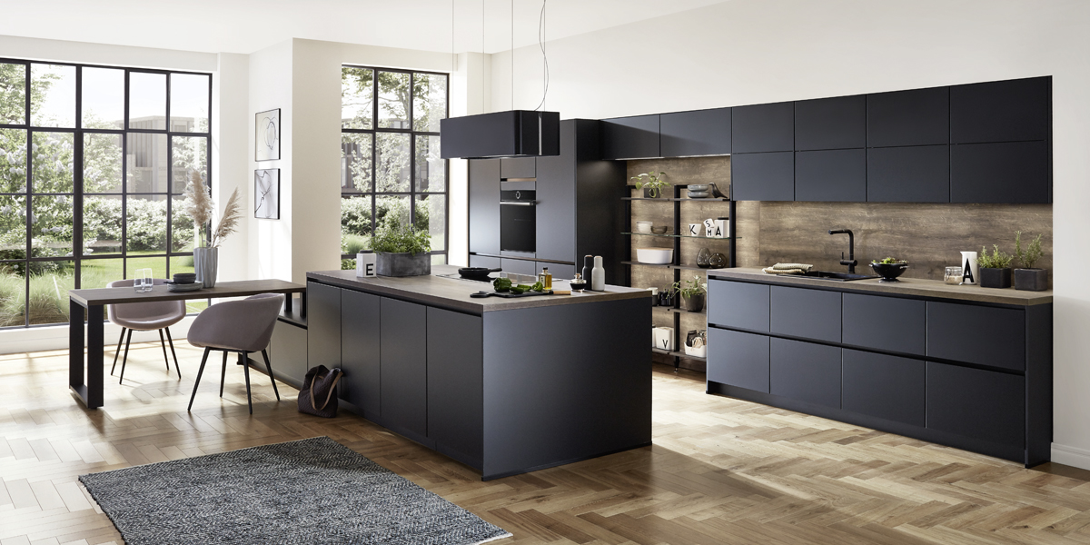 Inklusive Einbaubackofen schwarz Bauknecht BBI78PT1SK Energieeffizienzklasse A+, Glaskeramik Kochfeld mit Induktion und Kochfeldabzug (Umluft) Bora GP4U, Kühl- / Gefrierkombination Bauknecht BKGIS18S12 Energieeffizienzklasse E, Einbau-Designspüle Elleci Logik 300, XL-Schränken, Wandschränken mit Klappe, Unterschrank mit Frontauszügen.