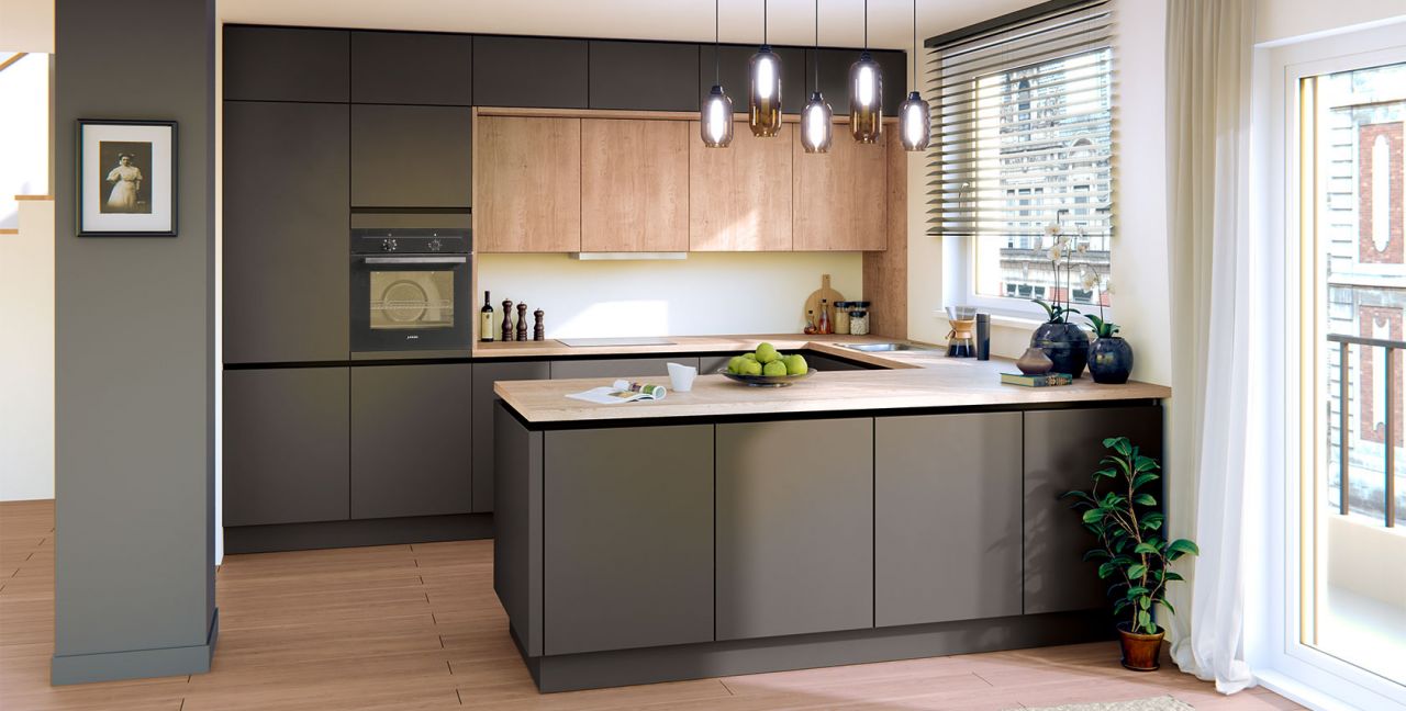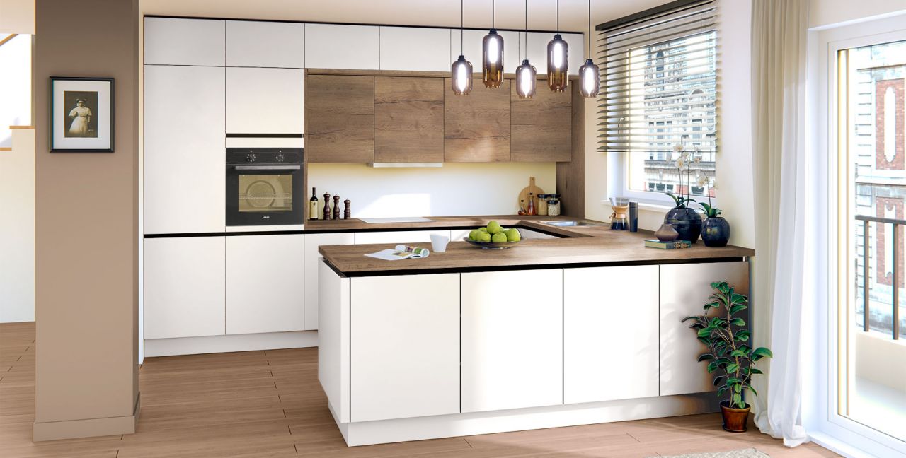 Inklusive Einbaubackofen schwarz Junker JF1300061 Energieeffizienzklasse A, Glaskeramik Kochfeld Siemens ET645HN17E, Flachschirmhaube Elica ELITE 14 60-D Energieeffizienzklasse D, Kühlschrank Laurus LKG88E Energieeffizienzklasse E, Einbau-Designspüle Elleci Logik 300, XL-Schränken, Unterschrank mit Großraumauszügen.